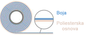 i elektornski zadatu temperaturu. Riboni koje proizvodi naša kompanija, imaju zaštitni sloj poliestera, koji sprečava brzo habanje termo transfer štampača, odnosno glave.